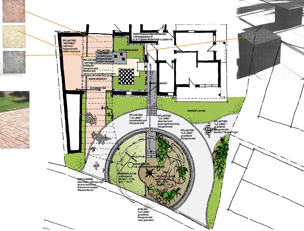 Privat: Entwurfs- und Genehmigungsplanung: EFH aus ehem. Scheune hervorgehend; Planung der Außenanlagen